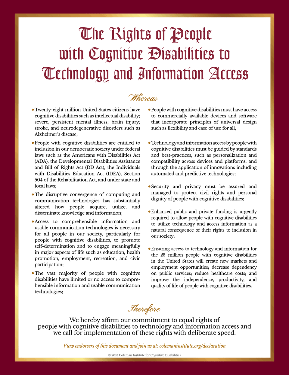 Declaration of the Rights of People with Cognitive Disabilities to Technology and Information Access.